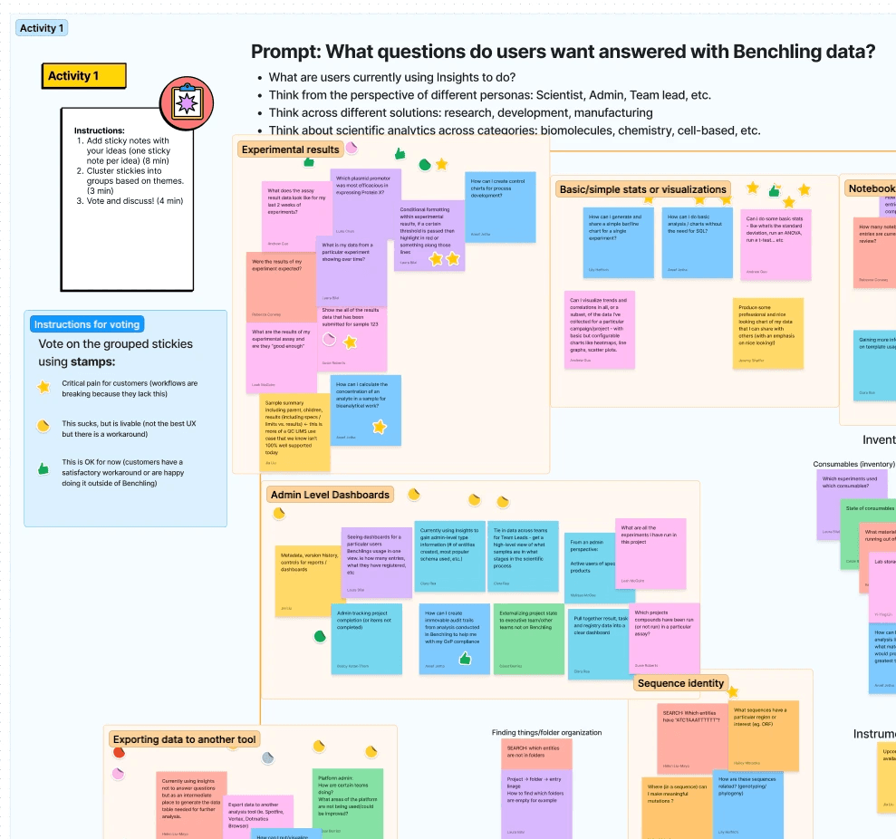 The biggest challenge early on was defining what "Analysis" actually meant. Because Benchling stores so much data, our customers wanted to access it in vastly different ways—from program leads tracking notebook entry completion to researchers examining cross-assay results. Internally, it also touched many teams, from dashboards to integrations.