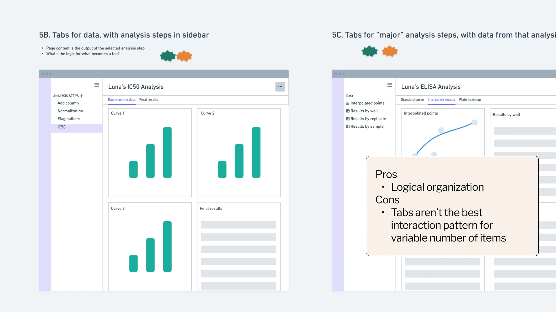 As we moved into detailed design, I realized that showing static mockups wasn't enough to communicate the behavior we needed. What happens when a scientist masks a data point in one chart? How does that affect downstream visualizations?